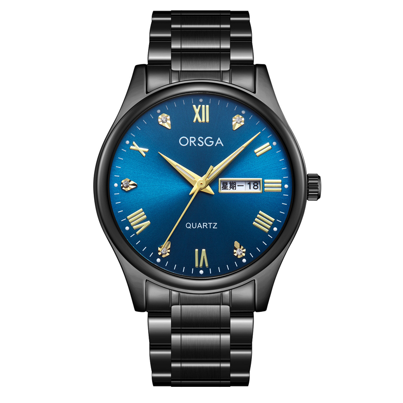 ORSGA手表男简约男士手表双日历时尚休闲商务防水学生男表石英表腕表1162G 黑钢蓝面每200元减30元¥138.00热销中 -