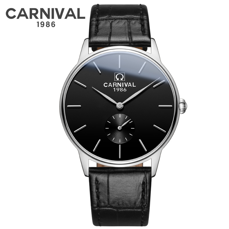嘉年华Carnival男士石英表 男表简约纤薄学生手表防水真皮表带时尚运动休闲腕表男表进口机芯8708G 精钢黑面赠品¥268.00热销中 -