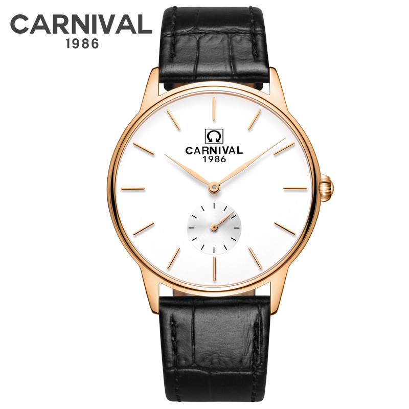 嘉年华Carnival男士石英表 男表简约纤薄学生手表防水真皮表带时尚运动休闲腕表男表进口机芯8708G 玫金白面赠品¥268.00热销中2评价 100.0%好评 -