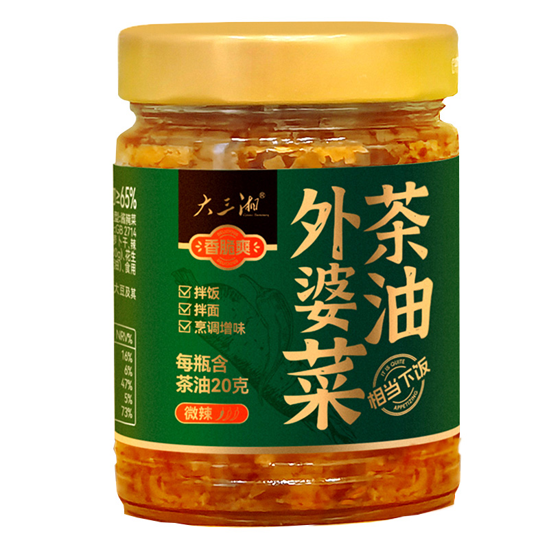 自营 大三湘茶油外婆菜开胃下饭菜烹调增味醇香浓郁口感清脆230g¥55.86热销中 -
