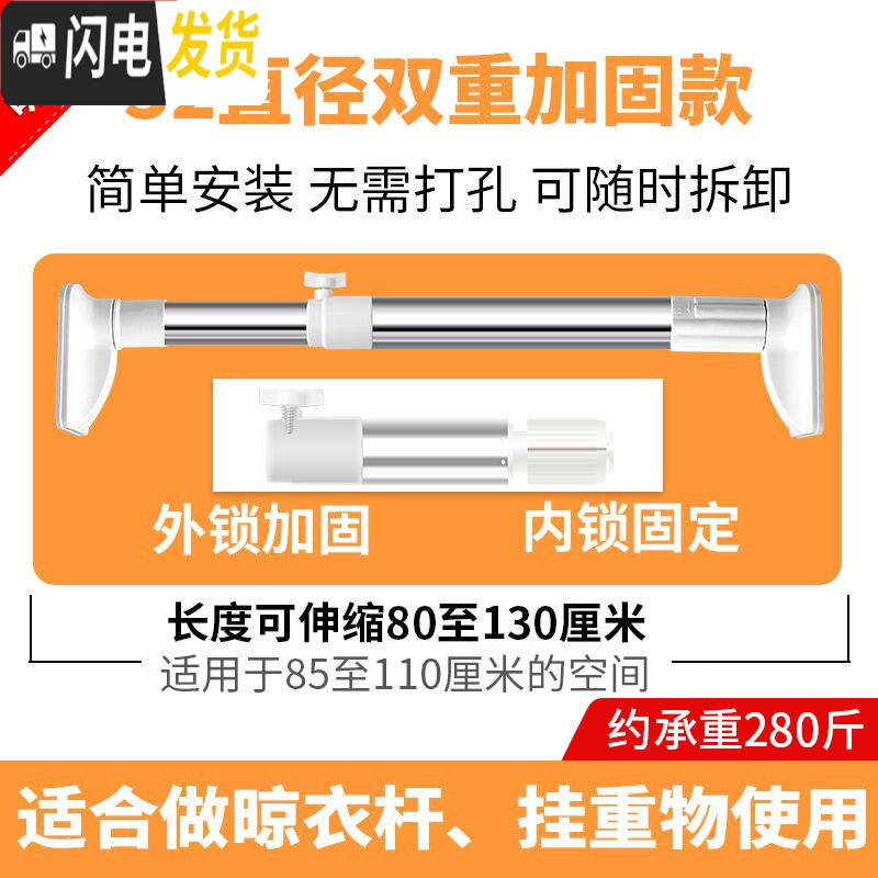 XIANCAI免打孔晾衣杆浴帘杆卫生间挂衣支撑杆衣柜伸缩杆卧室门帘窗帘撑杆 25管径白1.1~2米 免打孔¥46.62热销中 -