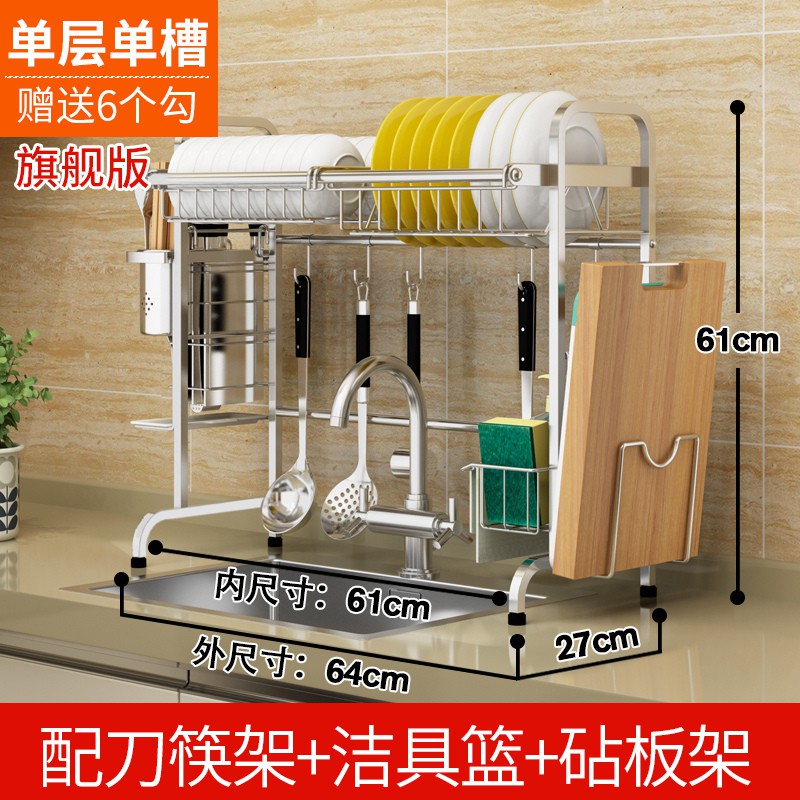 304不锈钢水晾碗沥水架厨房置物架用品家用收纳水池放碗碟大全收纳层架 三维工匠