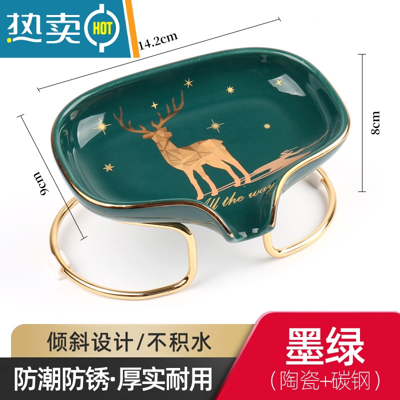 敬平免打孔壁挂式肥皂盒卫生间浴室双层沥水香皂盒轻奢风洗衣皂置物架 金边绿金纹麋鹿款【陶瓷+不锈钢】¥72.00热销中 -