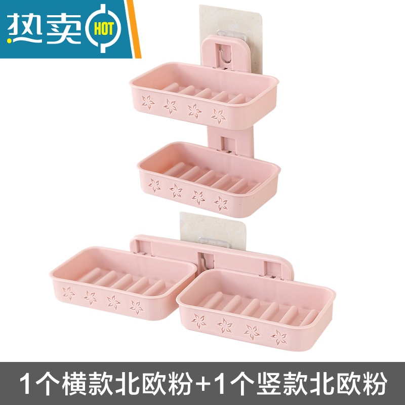 敬平创意双层肥皂盒壁挂沥水香皂盒静电贴式卫生间洗衣皂架免打孔 1个横款粉色+1个竖款粉色¥16.00热销中 -