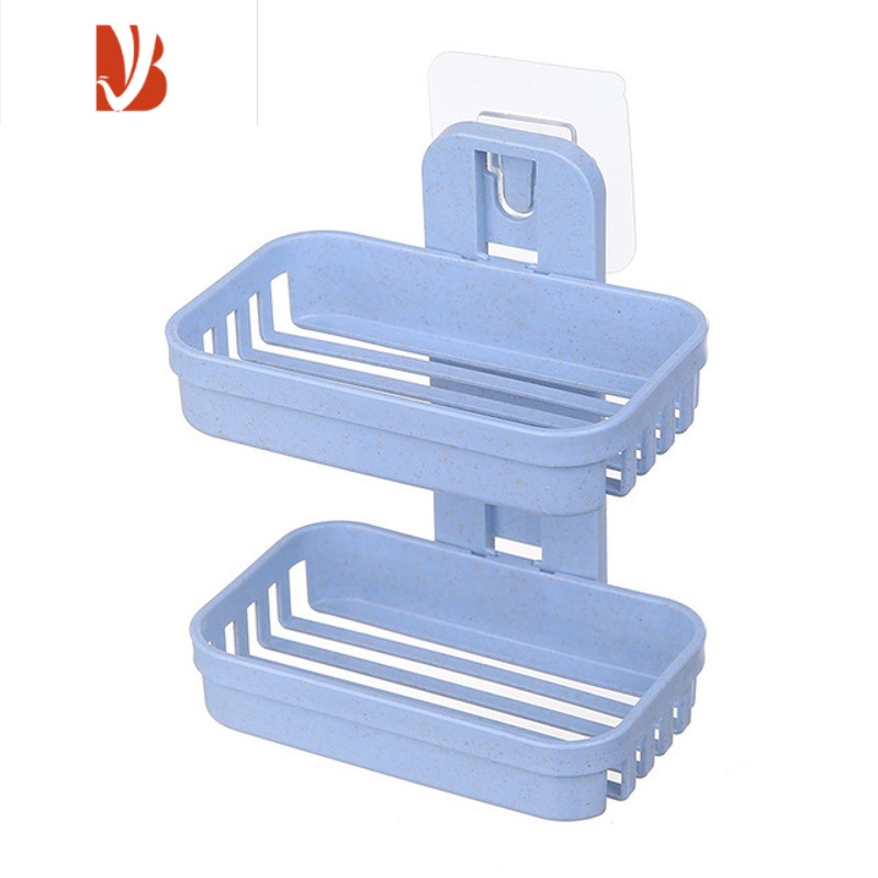 三维工匠浴室双层肥皂盒壁挂粘贴式家用香皂肥皂沥水架皂盒免打孔置物架 蓝色【1套】 送匠香置【¥6.84热销中 -