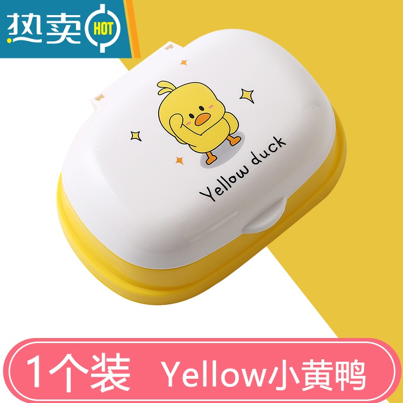 敬平肥皂盒家用可爱卡通儿童香皂收纳盒带盖旅行学生宿舍台面翻盖沥水 Yellow duck【带肥爱盖¥20.00热销中 -