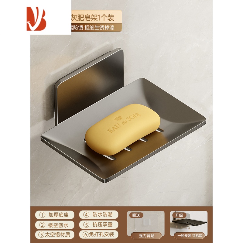 三维工匠枪灰色浴室肥皂盒创意沥水太空铝免打孔香皂碟卫生间置物架壁挂式 枪灰色-1个装【可拆卸清架意¥30.24热销中 -