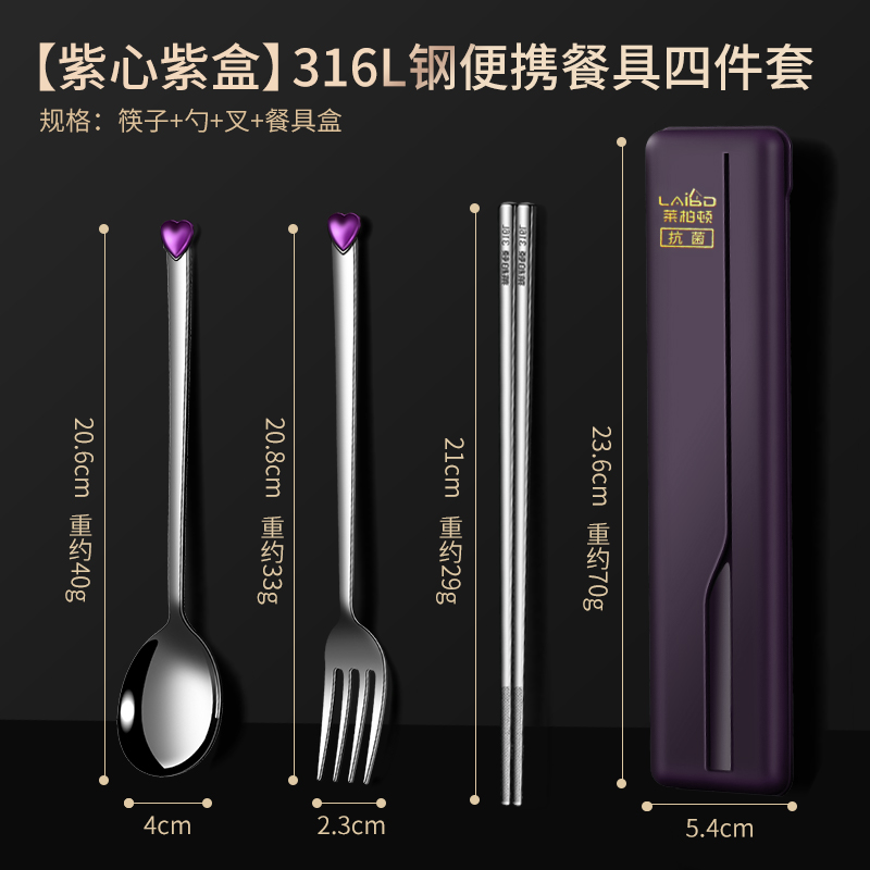 心形便携餐具 【紫心4】紫盒+勺+筷+叉(316L不锈钢餐具)¥45.90热销中 -