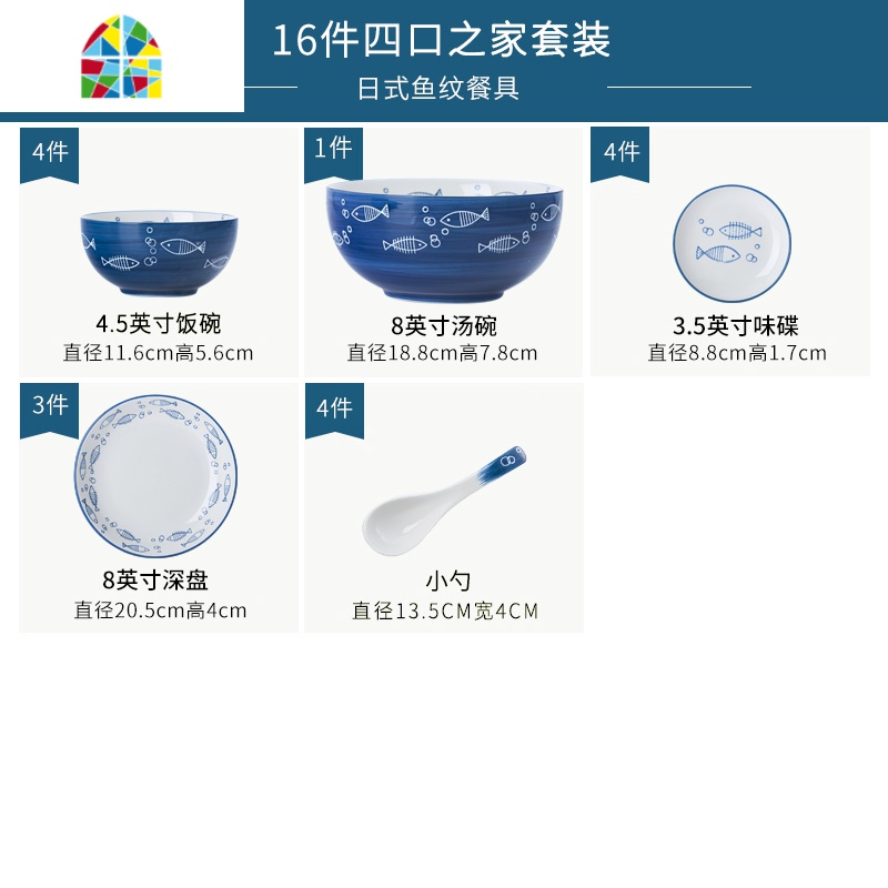 景德镇日式碗碟套装北欧INS陶瓷碗盘勺套装家用餐具吃饭碗 大汤碗 FENGHOU 12件套A款圆款(筷子X4)图案随机发¥85.00热销中 -