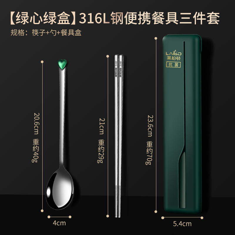 心形便携餐具 【绿心3】绿盒+勺+筷(316L不锈钢餐具)¥35.90热销中 -