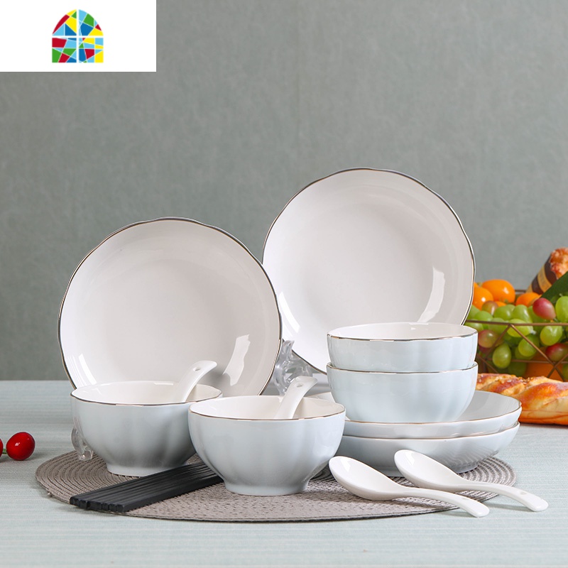 碗碟套装35头家用创意个性大号泡面饭汤碗盘筷景德镇陶瓷餐具套装 敬平 35头简爱(配8"汤古)4662L个¥107.64热销中 -