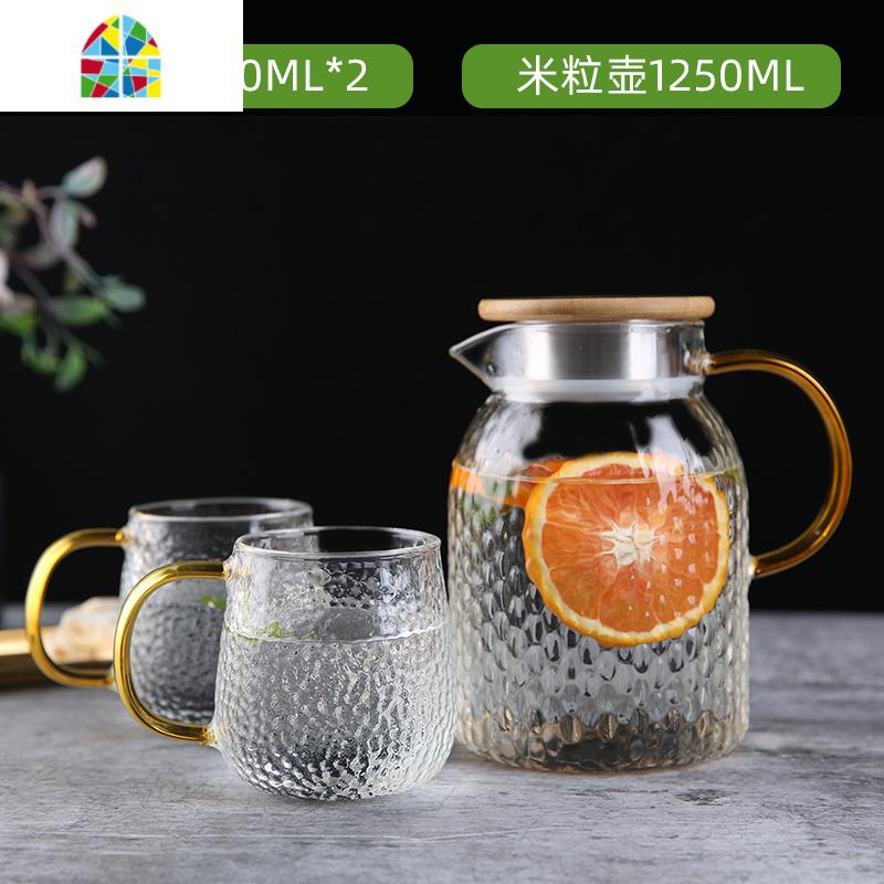 凉水壶玻璃耐高温家用冷水壶玻璃开水杯具耐热防爆扎壶套装大容量 FENGHOU 米粒壶1250ML+贵妃杯300M_321¥124.00热销中 -