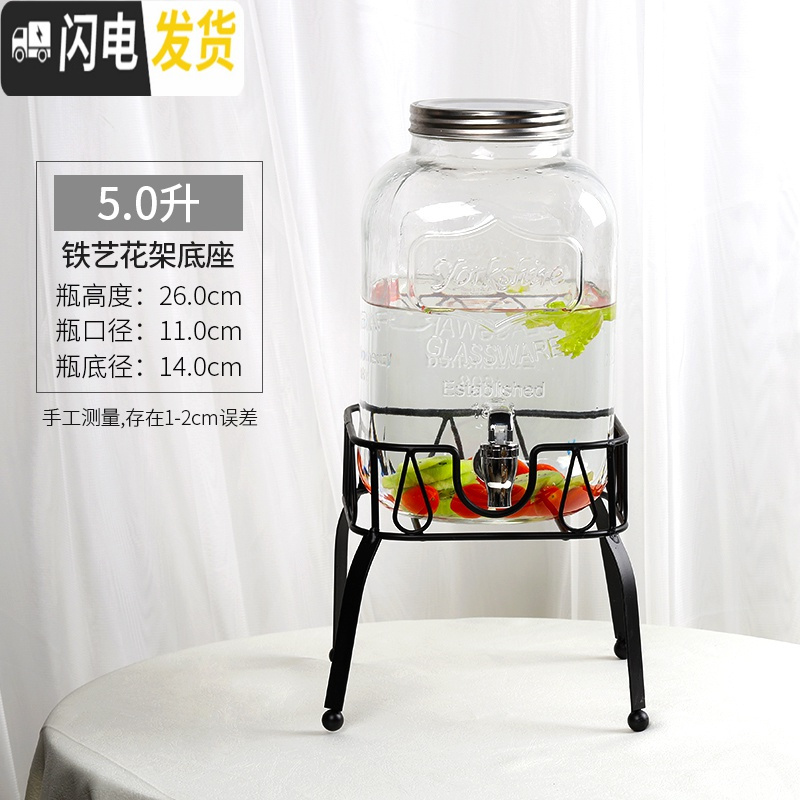 三维工匠开关瓶果汁罐冷饮夏季玻璃凉水壶大容量冷水壶家用水龙头饮料桶 5L+ABS龙头+铁艺花架勿用热水¥188.00热销中 -