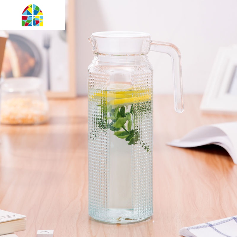 果汁装玻璃的瓶子容器家用冷水壶杯子玻璃带盖酸梅汤壶扎壶大透明 FENGHOU 1.1L竖条壶单个_109¥25.00热销中 -