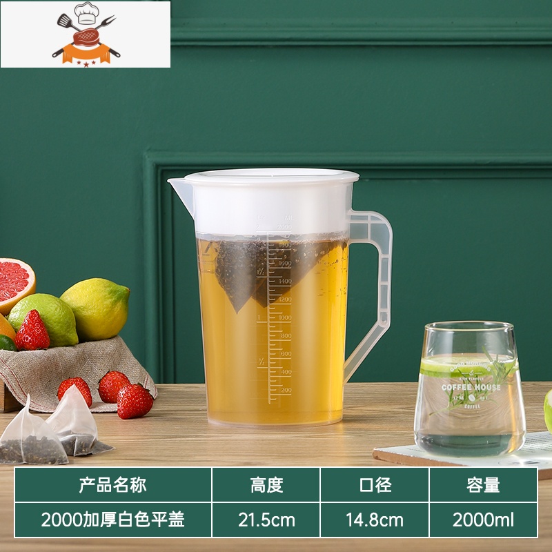 塑料冷水壶超大容量凉开水壶耐高温家用奶茶店量杯带盖带刻度商用 敬平FP5M1S 2000ml加厚白色平盖冷水壶 均码¥17.10热销中 -