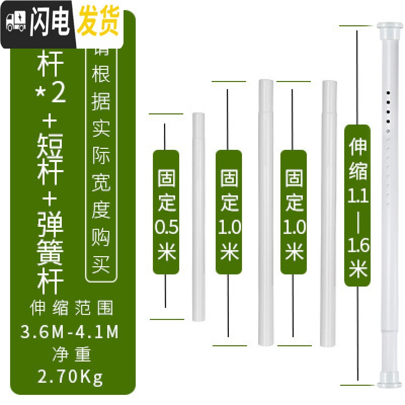 罗马杆窗帘杆免打孔单杆收缩杆支撑卧室卫生间室内阳台晾衣杆支架 白色【使用范围160-210】【送窗帘环15个】满80元减3元¥110.28热销中5评价 100.0%好评 -