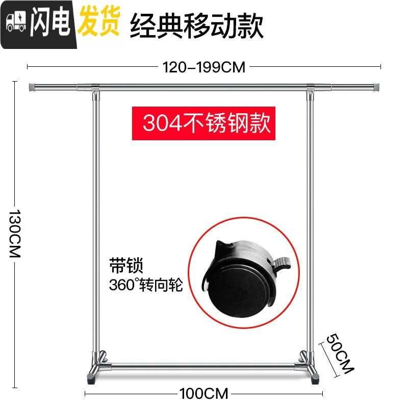 三维工匠304不锈钢晾衣架落地折叠室内家用晾衣杆晒衣架单杆式卧室挂衣架 【304】经典移动款高1.3米长2米可伸缩 1个¥145.00热销中 -