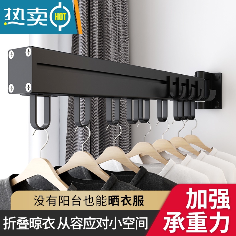 XIANCAI阳台折叠晾衣架隐形窗台室外室内壁挂凉晒衣架器伸缩晾衣杆 单杆时尚黑(不) 包用20年!¥124.20热销中 -