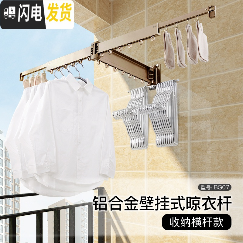 三维工匠阳台折叠晾衣架壁挂式隐形窗台窗外室内晒衣架户外伸缩晾衣杆 【香槟金·晾晒横杆款】双向折叠·20年保修 大¥818.00热销中 -