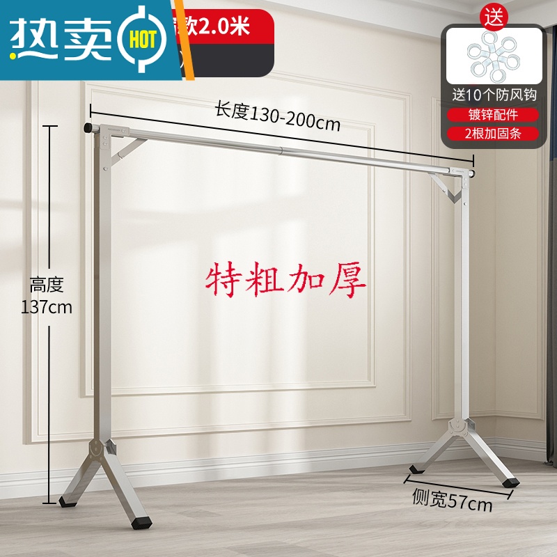 XIANCAI晾衣架落地折叠卧室内家用阳台伸缩式宿舍室凉晒被子器 特粗加厚不锈钢款单杆2.0米【可伸缩+送10防风钩¥73.80热销中