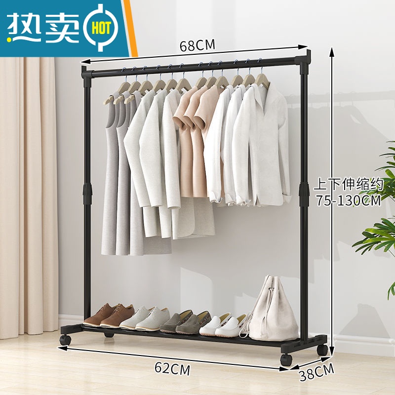 XIANCAI房间衣架不占空间简易晾衣架落地折叠卧室单杆室内晾衣杆挂衣架阳 烤漆款伸缩68 (中号款)+轮子¥39.96热销中 -