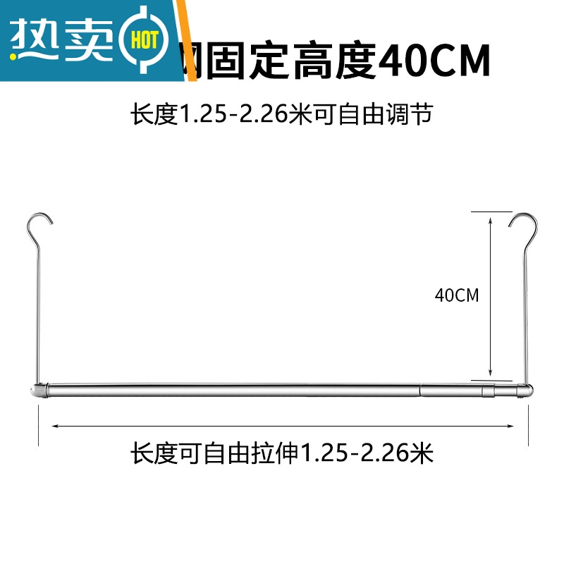 XIANCAI不锈钢加厚伸缩阳台顶装挂衣晾杆免打孔简易室外凉衣杆 加粗【一头伸缩】晾衣杆1.1-2.0米【带防风钩】¥87.84热销中 -