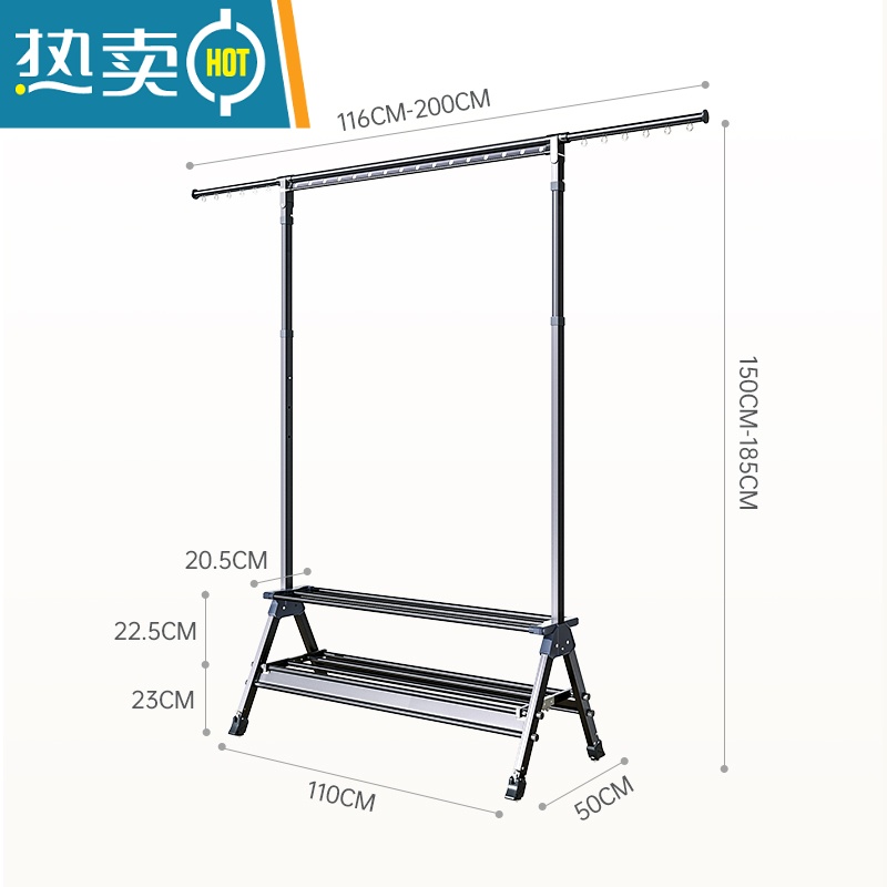 XIANCAI晾衣架落地折叠家用室内阳台室外卧室衣帽架单杆式伸缩置物挂衣架 【加长款·深空灰】高度长度均可调·双层置物¥878.40热销中 -