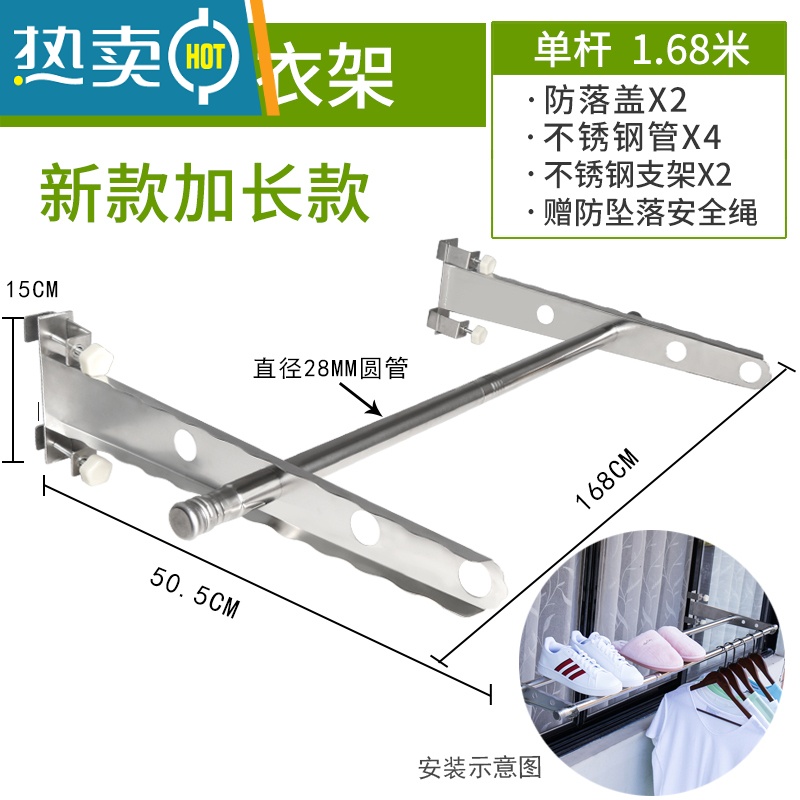 XIANCAI永固窗外晾衣架免打孔窗户阳台外晾衣杆防盗窗晾衣窗框晒被子器 新款单杆加长窗框1.68米 大¥126.00热销中 -
