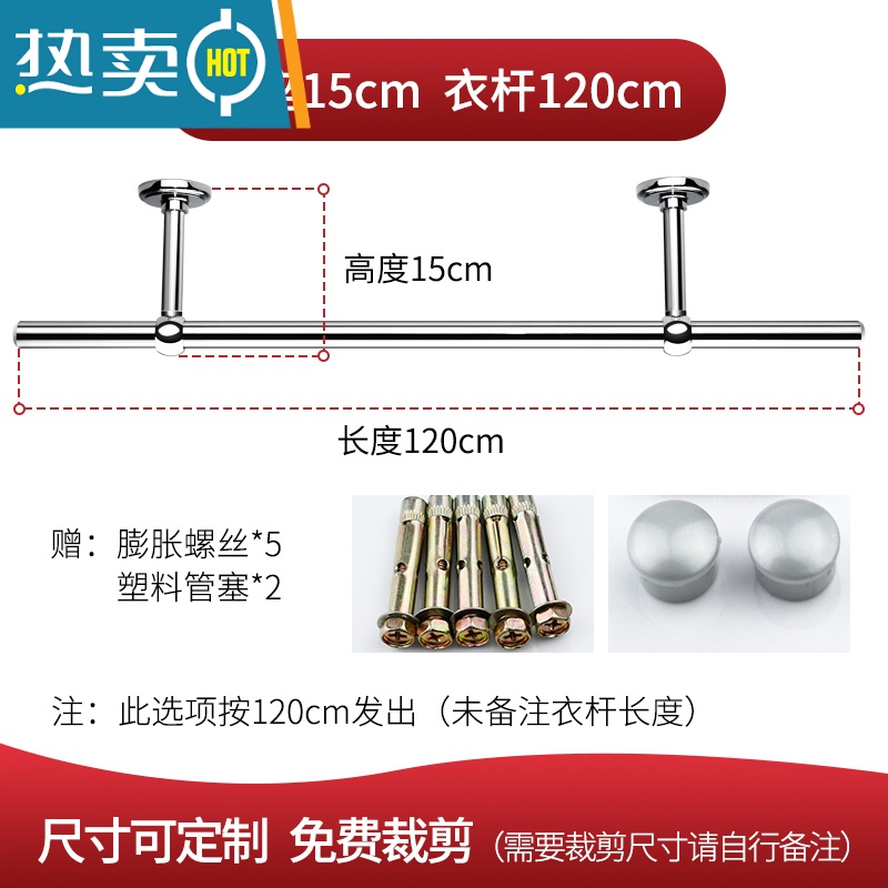 XIANCAI晾衣杆304不锈钢阳台顶装晾衣架单杆固定式挂凉衣杆晒衣架 15cm高1.2米长(送防滑扣)单根¥95.40热销中 -