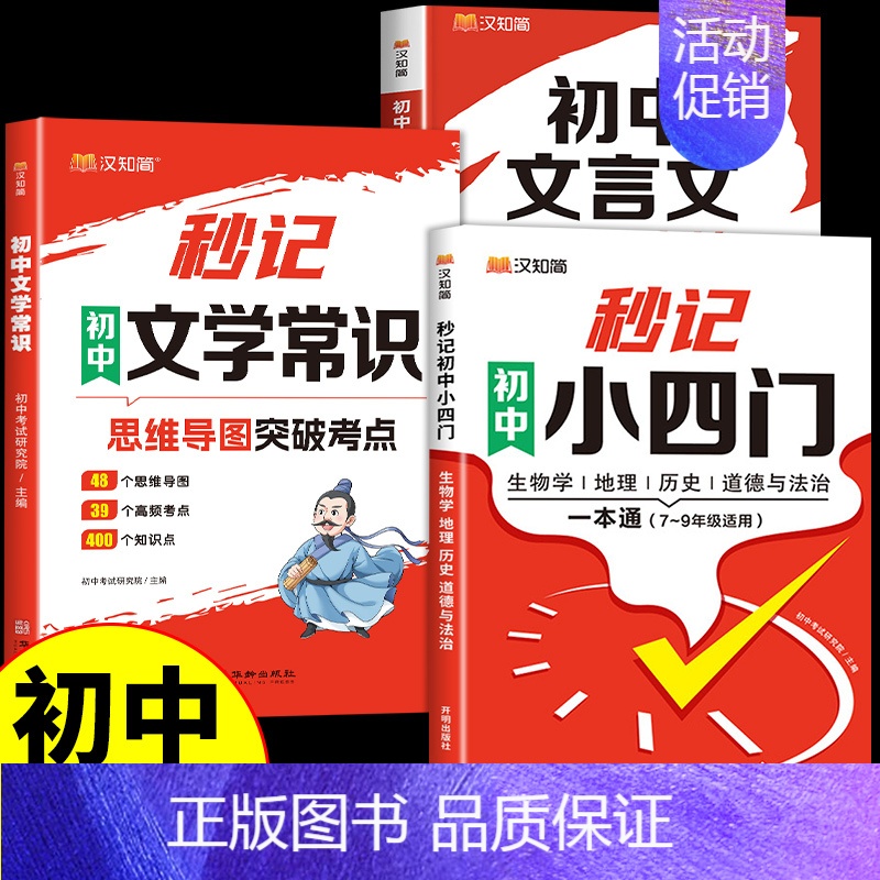 【汉知简】小四门+文言文+文学常识 初中通用 【正版】汉知简2024秒记初中小四门一本通知识点必背人教版政治历史地理生物¥167.00热销中