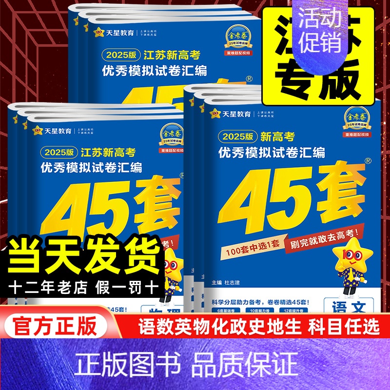 语数英物化地【6本套】 江苏省 【正版】江苏专版2025版金考卷高考45套模拟试卷汇编语文数学英语物理化学生物政治历史地¥362.00热销中