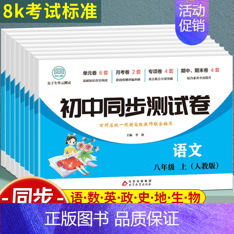 8年级道德与法治试卷 八年级上 【正版】八年级上册试卷测试卷全套人教版初中二年级下数学单元月考卷子测试物理语文英语历史地¥43.00热销中