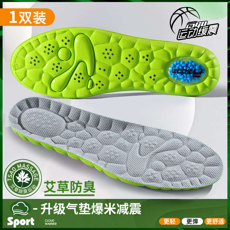 艾草气垫运动鞋垫男士吸汗防臭篮球跑步鞋垫减震高弹踩屎感aj椰子 1双云科技3.0--升级气垫艾草除臭 40满100元减5元¥33.00热销中 -
