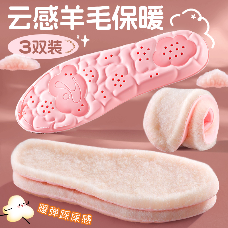 浪莎羊毛保暖棉鞋垫女款加绒加厚运动踩屎感超软吸汗防臭防寒冬季 3双羊毛保暖/软弹踩屎感-粉色 40满100元减5元¥50.00热销中 -