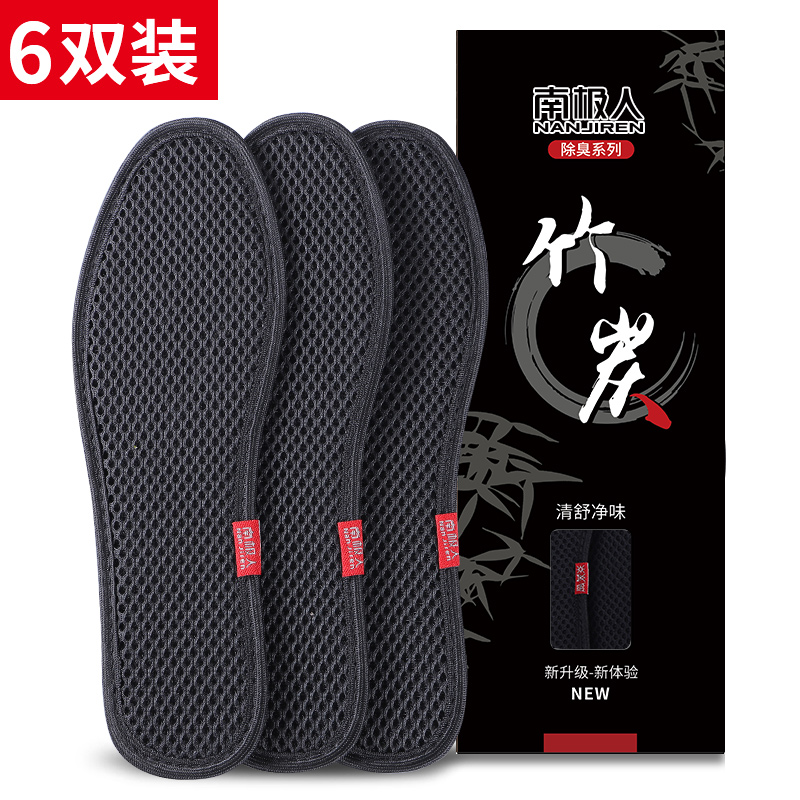竹炭防臭鞋垫男女士吸汗防臭透气软底舒适运动减震除臭留香南极气 6双经典透气网眼竹炭除臭热销推荐 38满100元减5元¥37.00热销中 -