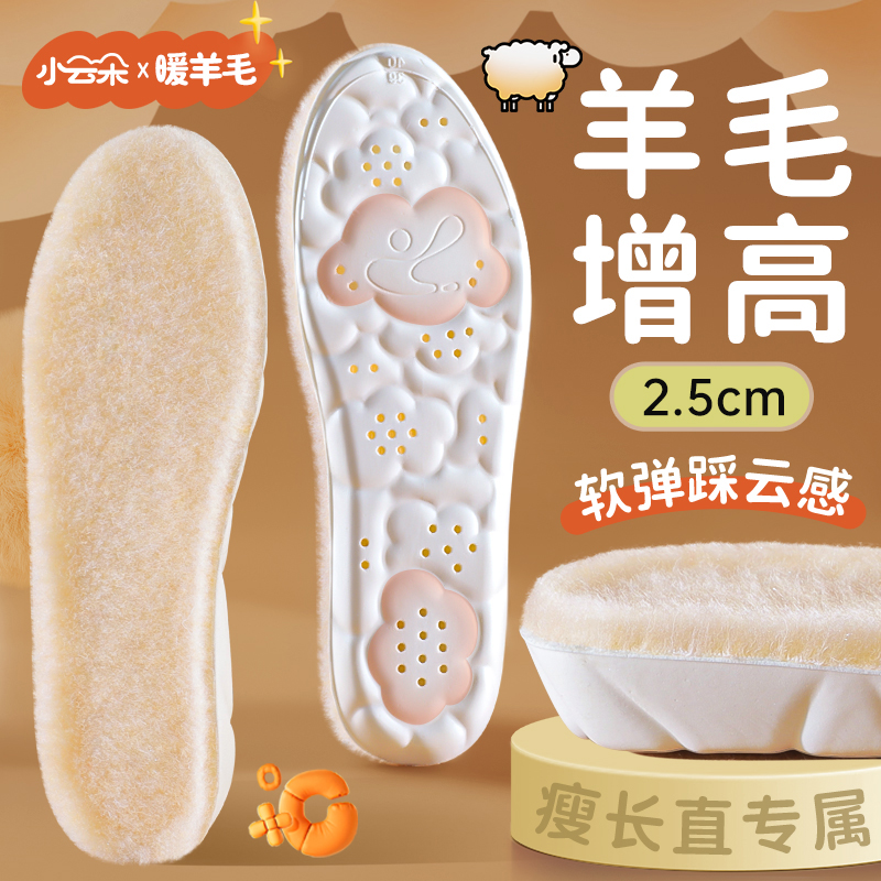 羊毛内增高鞋垫男女隐形不累脚踩屎感加绒保暖棉马丁靴增高垫冬季 1双软弹踩云感增高2.5cm 42¥31.00热销中