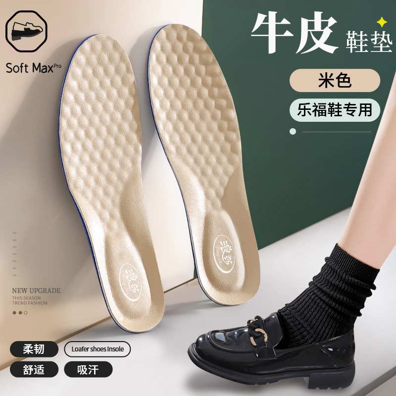 浪莎乐福鞋专用牛皮鞋垫女士吸汗防臭超软底舒适减震运动踩屎感男 1双超软牛皮鞋垫-米色 37¥18.00热销中 -