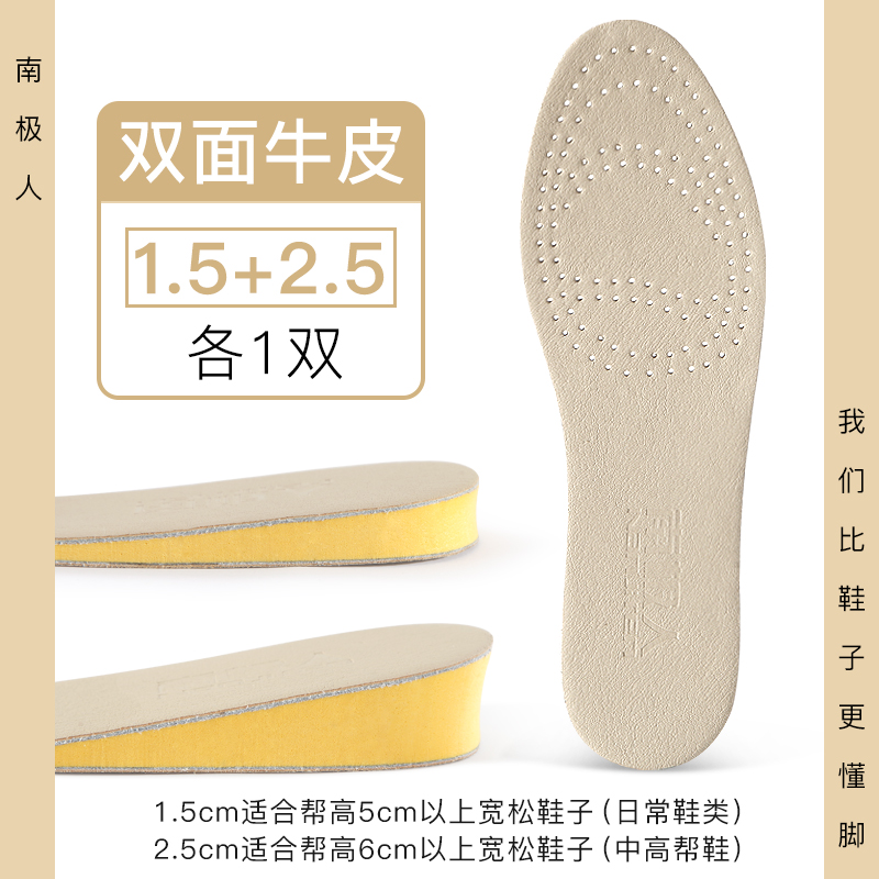 南极人2双 牛皮增高鞋垫女马丁靴专用隐形软底舒适内增高垫男全高 组合1.5+2.5cm双面牛皮增高丨店长推荐 40满100元减5元¥48.00热销中 -