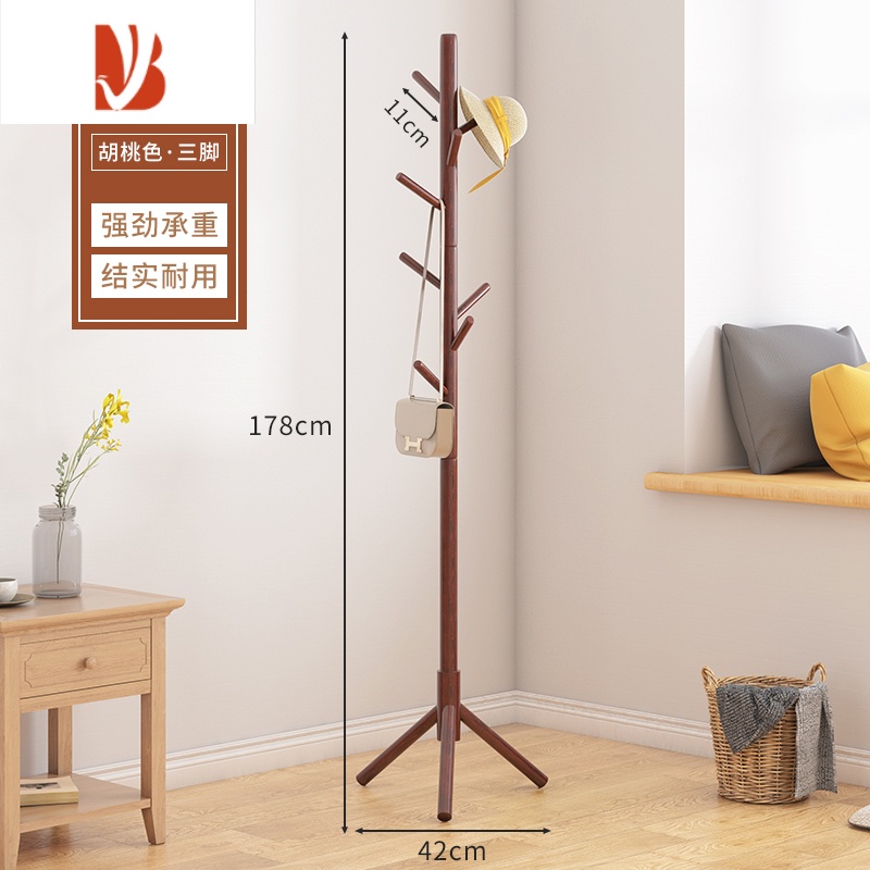 三维工匠实木落地衣帽架挂衣架卧室家用立式衣架杆衣服架简约现代挂包挂 升级款三腿-胡桃色-实木免工具安装¥44.64热销中 -