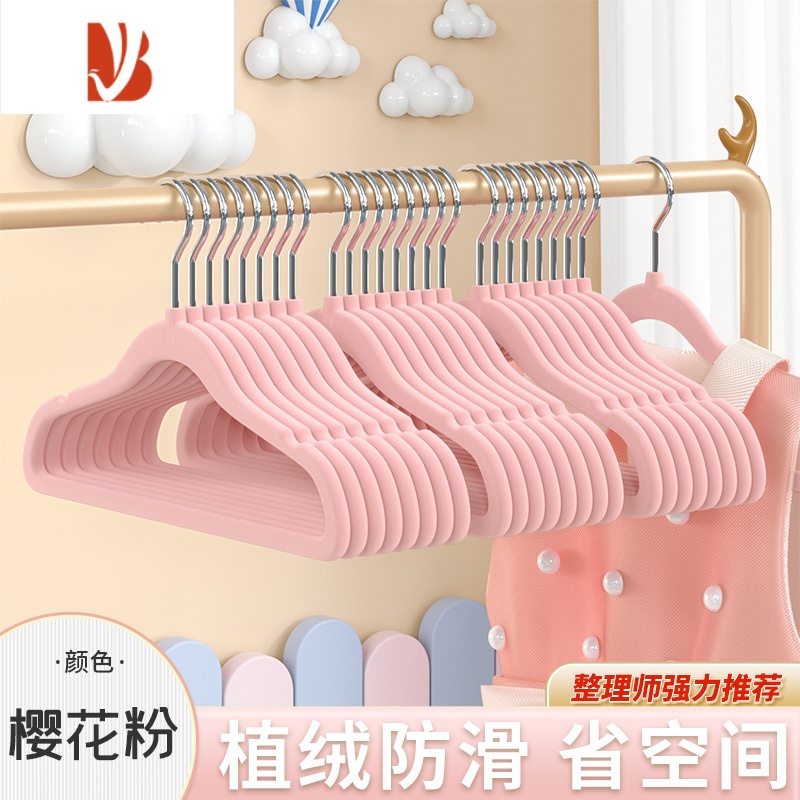 三维工匠儿童植绒衣架晾衣挂婴儿宝宝小衣架家用挂衣中童大童小孩衣小 樱花粉防滑不掉绒-给孩子的成长礼物¥19.44热销中 -