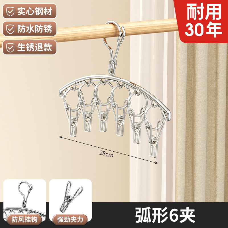 多夹子晾衣架家用不锈钢晒袜子架多功能内衣宿舍神器挂钩袜架阳台 超省空间+小弧形6夹-1个装¥6.00热销中 -