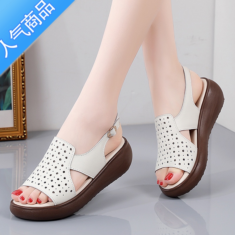 SUNTEK凉鞋女2023年夏季新款镂空透气厚底坡跟时尚法式外穿女士休闲单鞋 米色镂空 38¥125.82热销中 -