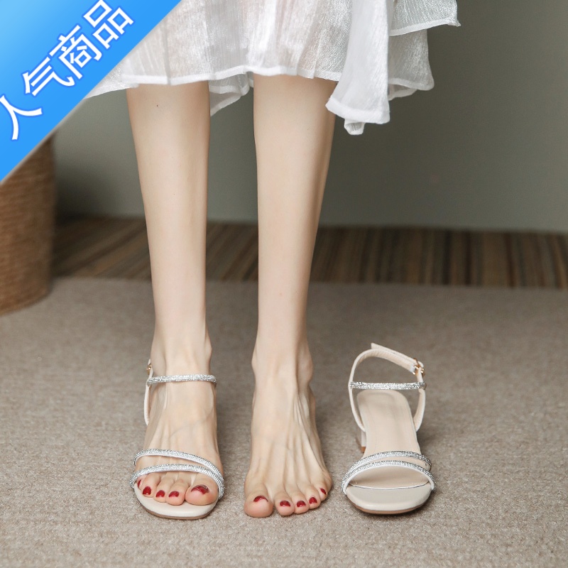 SUNTEK水钻凉鞋女粗跟2023夏季中跟性感露趾缠绕一字扣仙女风罗马高跟3 杏色 35¥142.20热销中 -