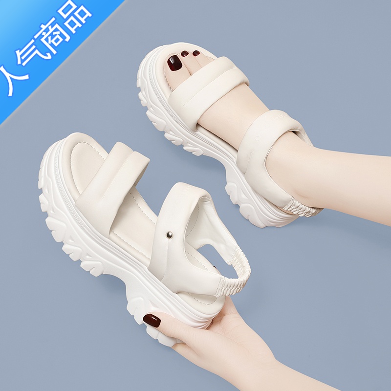 SUNTEK厚底黑色坡跟高跟凉鞋女款2023年新款夏季踩屎感外穿运动沙滩鞋子 JST1615白色跟高6.5厘米 40标准码¥256.00热销中 -