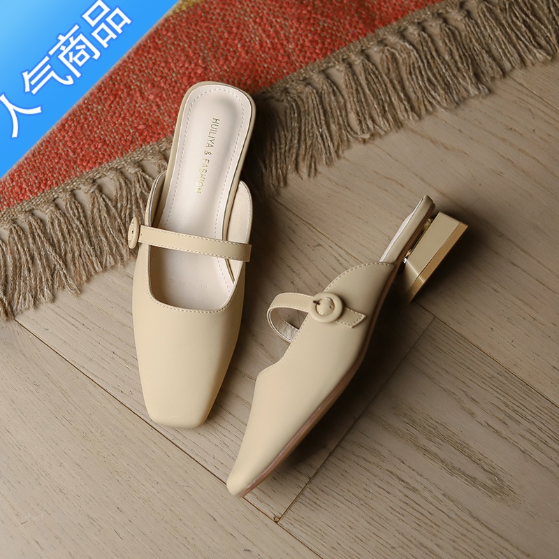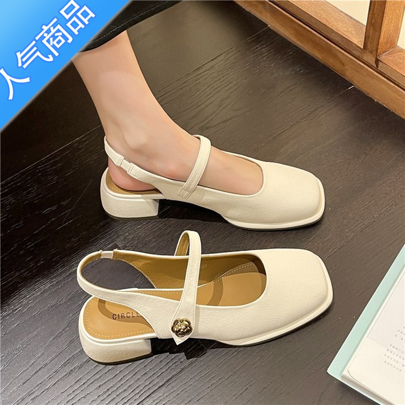 SUNTEK后空凉鞋女包头2023春季新款粗跟单鞋女一字带方头中跟女鞋仙女风 米白色 39¥113.22热销中 -