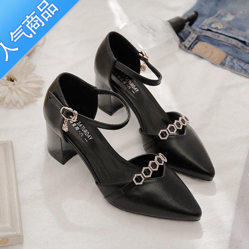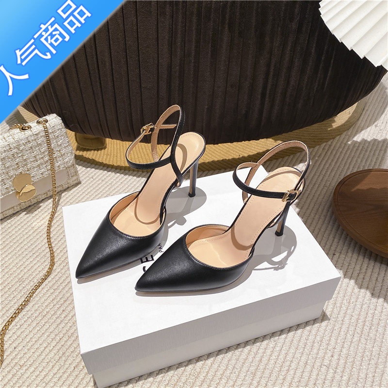 SUNTEK裸色尖头高跟鞋女2023欧美新款包头性感浅口单鞋细跟扣带中空凉鞋 黑色6cm 37¥266.00热销中 -