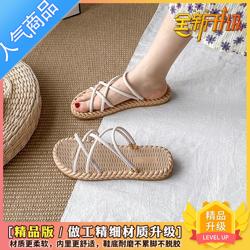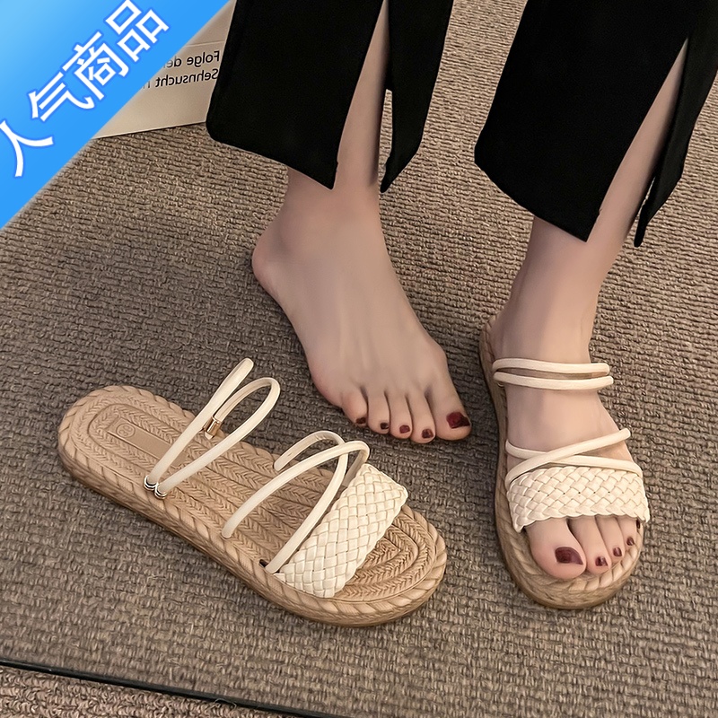 SUNTEK网红时尚拖鞋女外穿2023夏季新款百搭平底可湿水麻花编织罗马凉鞋 米色 女款女款37¥33.84热销中 -