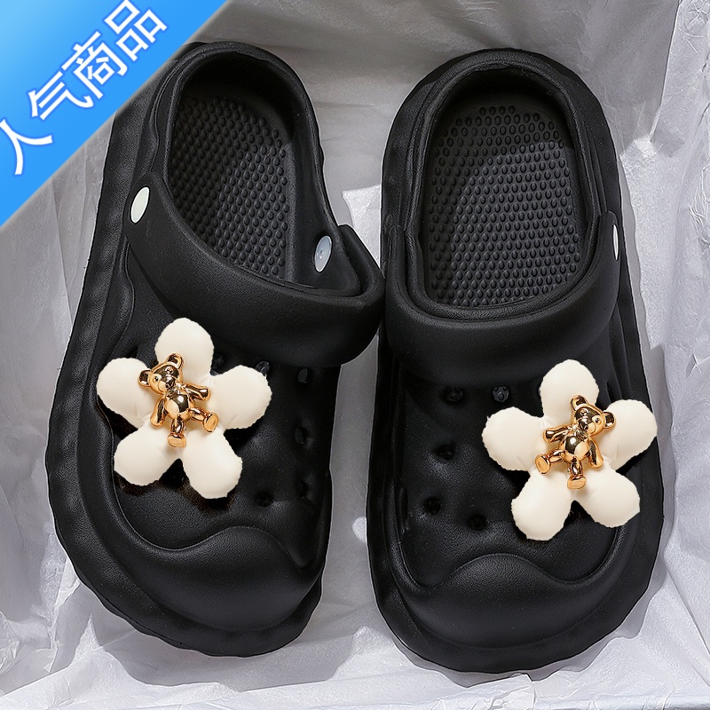 SUNTEK踩屎感洞洞鞋女款夏季外穿2023新款防滑沙滩白色护士包头凉鞋女 黑色大花熊 39-40适合40-41脚穿¥37.62热销中 -