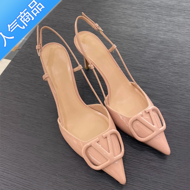 SUNTEK2023春夏新款包头V扣高跟凉鞋女细跟一字带尖头浅口裸色女高跟鞋 裸色漆皮8厘米 38¥266.00热销中 -