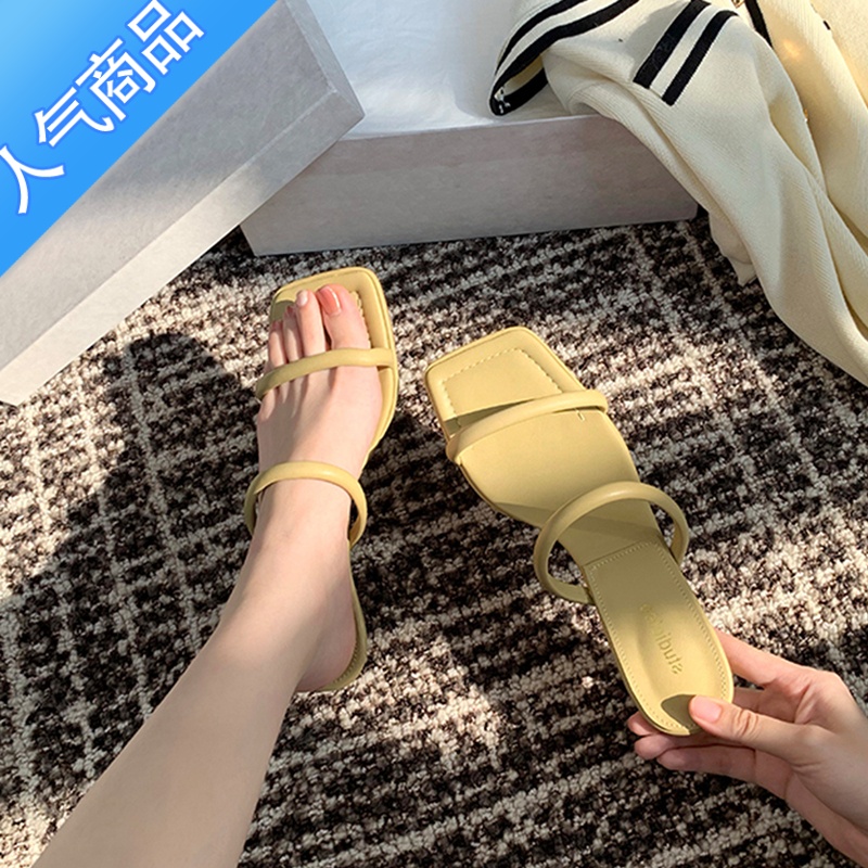 SUNTEK一字带凉鞋女2023新款夏季仙女风细跟中高跟法式气质方头细0季鞋 浅黄色4cm 36¥176.40热销中 -